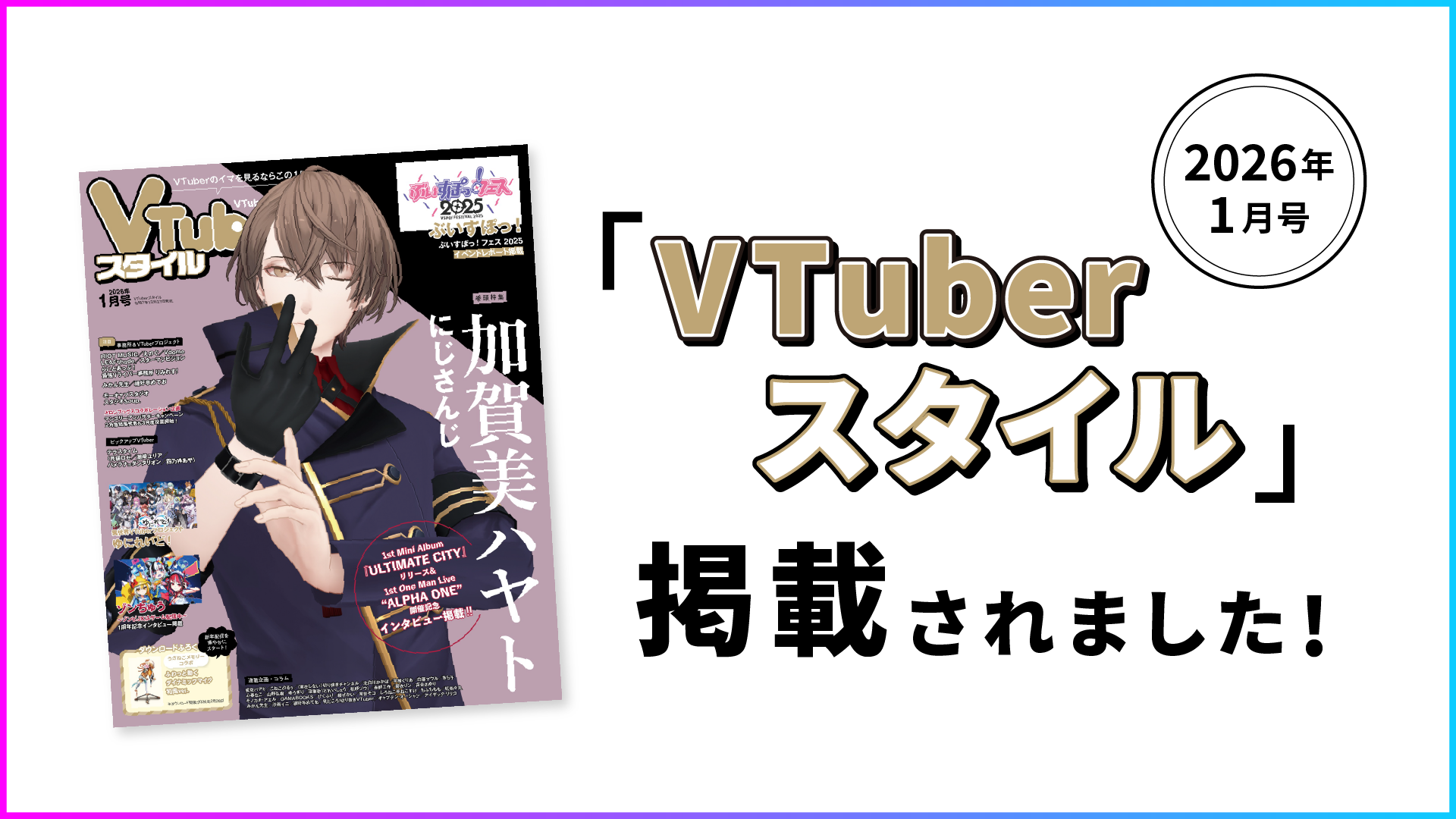 Vdome 第1期生 甘屑あまえが、人気VTuber専門情報誌「VTuberスタイル」2026年1月号(2025年12月27日(土)発売)に掲載されました。